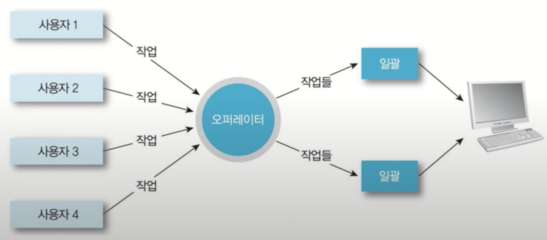 - 사용자의 요청 작업(천공카드 등)을 일정 시간 모아두었다가 한 번에 처리